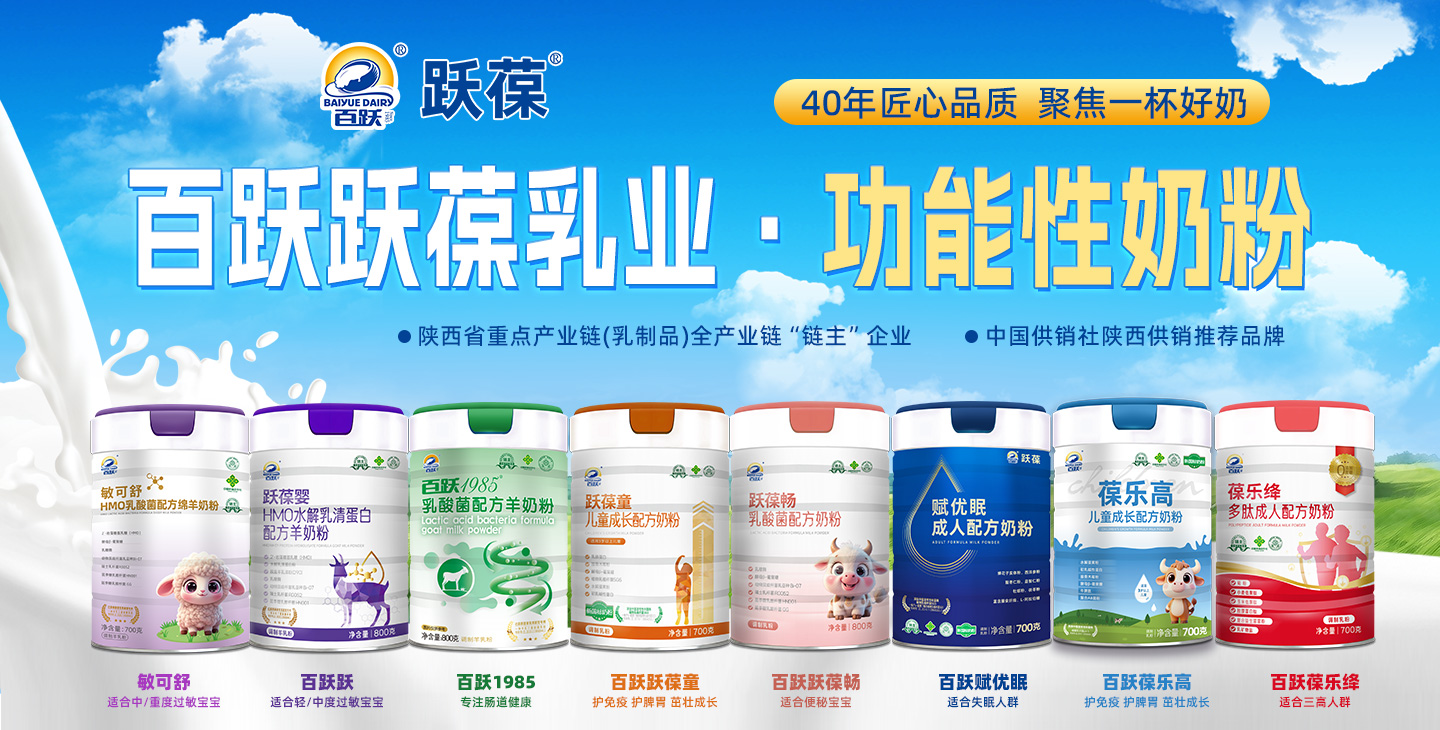 西安百躍躍葆乳業(yè)有限公司,是西安百躍羊乳集團(tuán)有限公司旗下控股子公司,專注于功能性特種乳粉的研發(fā)、生產(chǎn)、銷售及服務(wù)。作為乳制品行業(yè)資深企業(yè)百躍集團(tuán)的新銳力量,躍葆乳業(yè)依托母公司40余年羊乳制品生產(chǎn)經(jīng)驗(yàn)及全產(chǎn)業(yè)鏈優(yōu)勢(shì),采用國(guó)際先進(jìn)生產(chǎn)工藝和檢測(cè)技術(shù),致力于為消費(fèi)者提供鮮醇、營(yíng)養(yǎng)、健康、好喝的乳粉產(chǎn)品。
