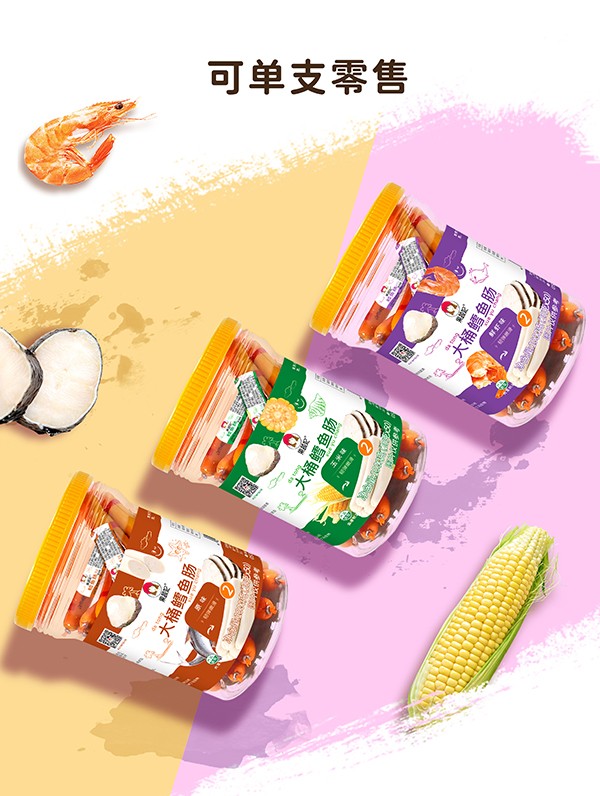 果蔬妃【大桶鱈魚腸】營(yíng)養(yǎng)豐富,韌彈嫩滑,不添加人工香精、色素和防腐劑,在堅(jiān)持安全配方的基礎(chǔ)上,單支獨(dú)立條碼,真正可以單支銷售!一桶50支,20克每支,有原味、玉米和鮮蝦3種口味可選!
