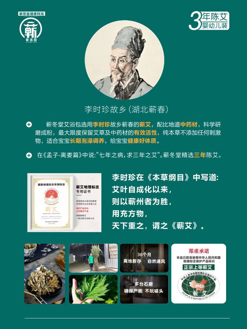 在《孟子-離婁篇》中說:“七年之病,求三年之艾”。蘄冬堂精選三年陳艾。