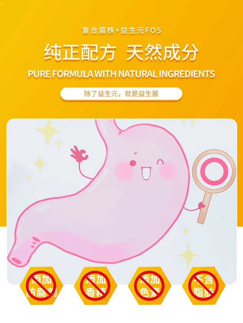 呵瑞益安益生菌凍干閃釋片,采用Qsorb凍干閃釋片藥物載體技術(shù),開啟即食,無需調(diào)制,直接口服,入口0.3秒即化,活菌直達(dá);3大進(jìn)口明星菌株,選用菌株符合衛(wèi)健委【可用于嬰幼兒食品的菌種名單】,每克添加>1800活菌;復(fù)合菌株+益生元FOS,純正配方,除了益生元,就是益生菌;不添加防腐劑、香精、色素,不含脂肪;采用歐盟軍工級雙鋁泡罩專利包裝,強(qiáng)抗氧化,常溫下儲存5年,產(chǎn)品活性扔保持80%以上。