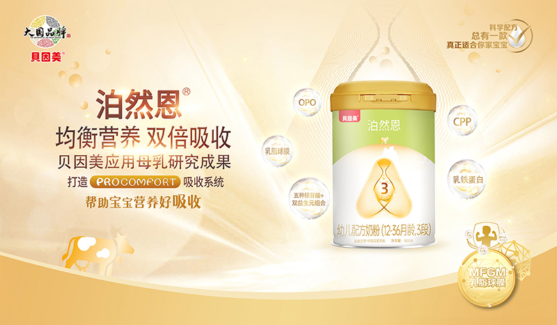 據(jù)悉,貝因美泊然恩幼兒配方奶粉不僅奶源講究,配方更是“王炸”組合——乳脂球膜、乳鐵蛋白、酪蛋白磷酸肽CPP、OPO 結(jié)構(gòu)脂,全都有!五種核苷酸搭配 GOS/FOS,還有乳脂球膜含腦磷脂群,真真的智慧加分項(xiàng),滿滿的都是寶寶們更需要的優(yōu)質(zhì)好營(yíng)養(yǎng)!更值得一提的是,它的 procomfort親和吸收系統(tǒng),和寶寶的嬌嫩腸胃超合拍,雙倍吸收營(yíng)養(yǎng)so easy!而且它口感好,寶寶喝得香!