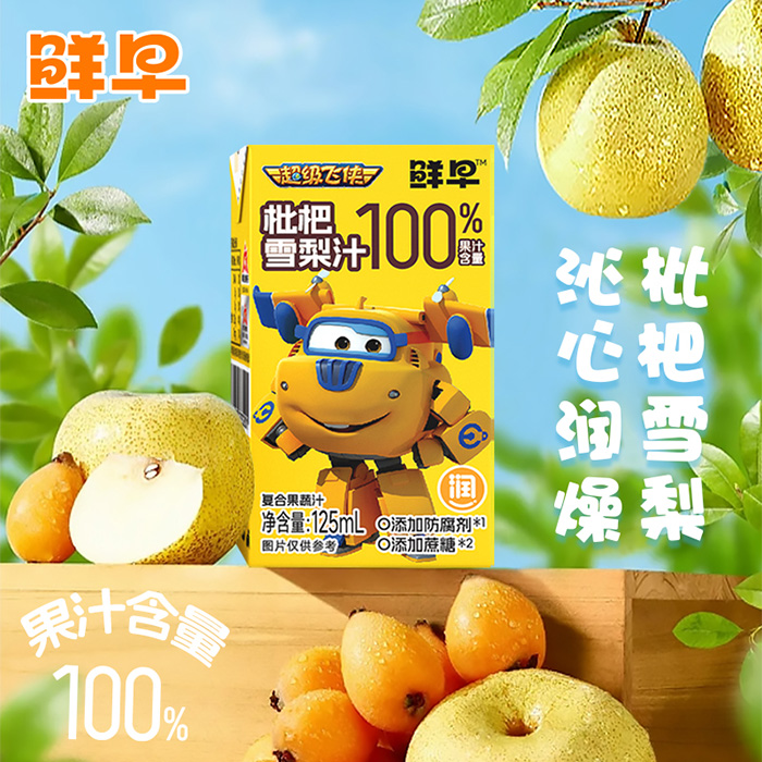 鮮早超級(jí)飛俠枇杷雪梨汁125ml盒裝